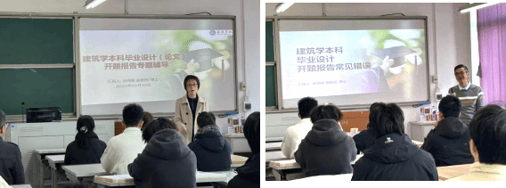 随后,徐伟陵副教授开展辅导讲座,就“如何选定具有创新性与实践价值的毕业设计题目”进行了深入讲解。他鼓励学生们从社会热点、技术进步、文化传承等多个维度出发,寻找与建筑学紧密相关的研究课题,确保题目既有理论价值,又能解决实际问题。接着,他分享了“开题报告撰写技巧与注意事项”。他详细阐述了开题报告的结构布局,包括研究背景、目的意义、国内外研究现状、研究方法、预期成果等关键部分,并强调了逻辑清晰、论据充分、表述准确的重要性。同时,他还提醒学生们注意格式规范,确保报告的专业性和可读性。