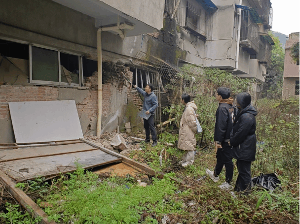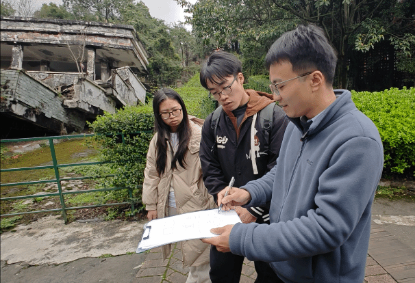 3月14日,调研小组前往汶川县映秀镇漩口中学遗址区,在缅怀遇难同胞、寄托哀思的同时,围绕学校主教学楼倒塌原因,立足专业视角深入剖析结构设计、施工工艺等方面的症结所在,积极探讨建筑抗震优化方案,在思辨与交流中锤炼了专业分析能力和问题解决能力。