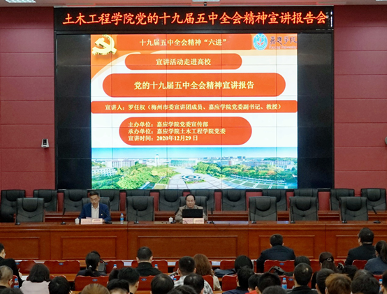 报告会上,罗任权强调,党的十九届五中全会是我们党在全面建成小康社会胜利在望、全面建设社会主义现代化国家新征程即将开启的重要历史时刻召开的一次十分重要的会议。他紧紧围绕准确把握理解党的十九届五中全会精神这一主题,用图文并茂PPT、声光电相结合的多媒体,饱含激情,深入解读了党的十九届五中全会精神和《建议》的意义和作用、丰富内涵、指导方针、重大任务、具体政策,系统梳理了《建议》的主题、主线,重点阐述了《建议》的核心要义、精神实质、实践要求,深情讴歌了“十三五”时期及改革开放40年以来党和国家各项事业取得的伟大成就,热情宣讲了“十四五”规划和2035年远景目标,进一步增强了我们在习近平总书记和党中央坚强领导下再创新辉煌的坚定决心和信心。最后,他希望同学们为建设社会主义现代化强国、实现中华民族伟大复兴而读书;老师们为广东实现走在全国前列、创造新的辉煌而做出“嘉应人”新的贡献!