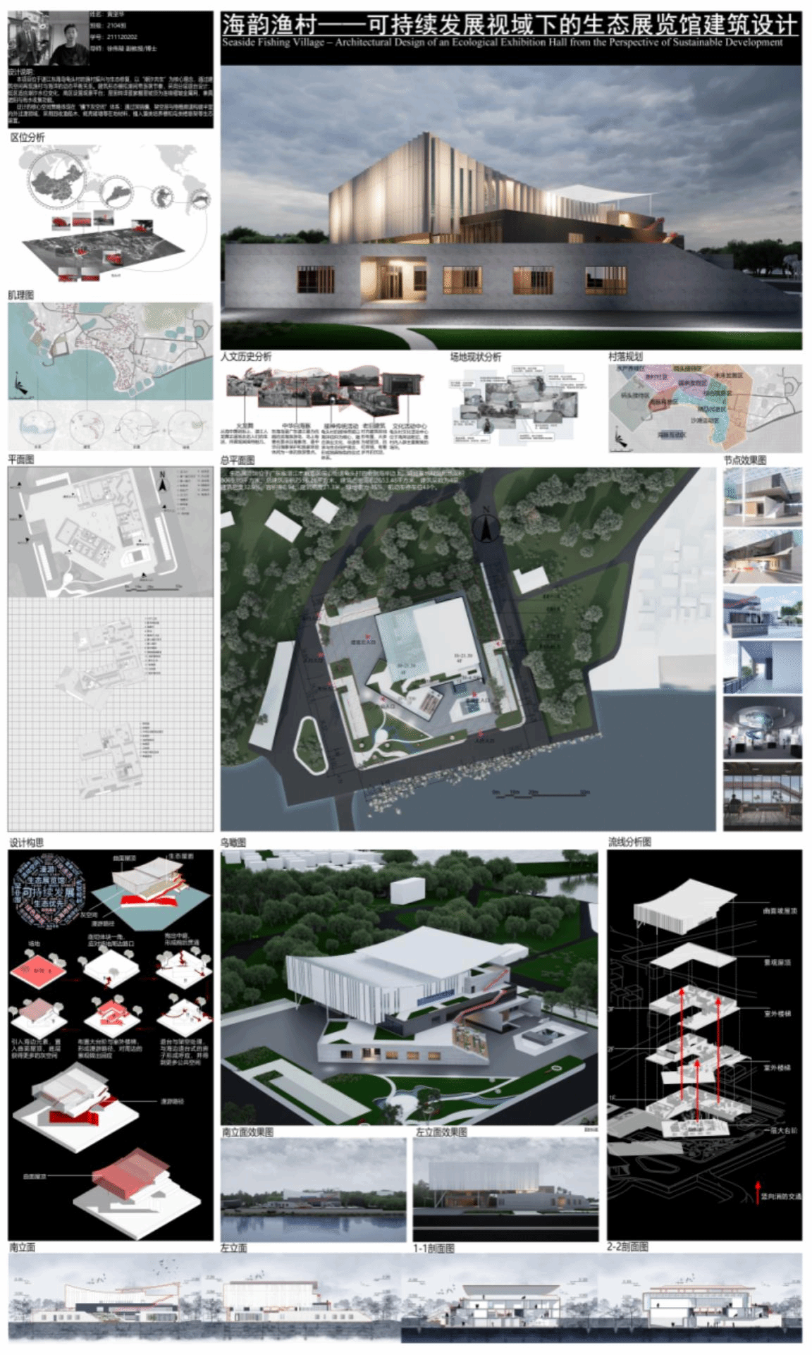 作品名称:海韵渔村——可持续发展视域下的生态展览馆建筑设计