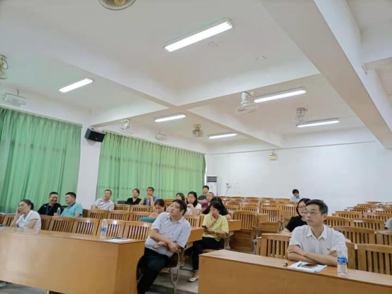 2021年9月26日下午,我院在公颜实训大楼B502教室组织全体教师和学生党员一起学习贯彻“习近平总书记在庆祝中国共产党成立100周年大会上的重要讲话” 精神。马克思主义学院副院长李学明作主题辅导报告,学院党委书记陈纪忠、执行院长董作荣、党委副书记张敏、副院长沈飞和欧阳志勇,以及学院全体老师和学生党员等100余人参加了本次活动。活动由张敏副书记主持。