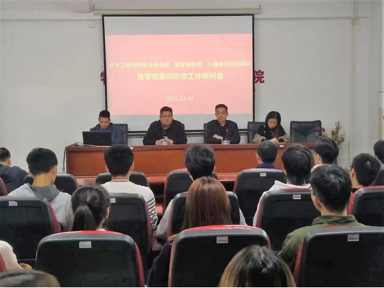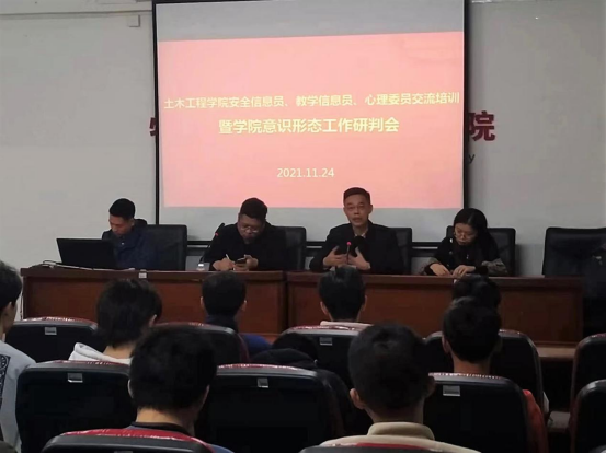 为了进一步了解我院学生在校的学习和生活情况,学生心理健康状况、以及学院教学情况,推进我院学生工作稳定有序开展,同时,为更好地做好学院意识形态工作,11月24日下午,yl6776永利集团在何侨生大楼101会议室召开了学院安全信息员、教学信息员、心理委员交流培训及意识形态工作研判会。yl6776永利集团党委书记陈纪忠、副书记张敏、学工办主任李丽敏、辅导员李元贵及学院安全信息员、教学信息员、心理委员近40人参与了本次会议。