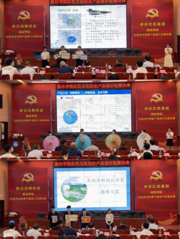 10月26日下午,学校举办的“红色文化创意产品设计比赛”决赛在文科楼121室落下帷幕。经过作品审查、初赛、决赛、现场答辩和评委会综合评定,我院参赛选手沈华健团队的项目“追忆四季,‘嘉’展未来”荣获一等奖,邹斌团队“嘉园之合”项目和朱薇燕团队“浇筑嘉园红星,共续革命血脉”项目荣获二等奖。