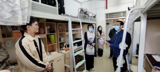 期间,党委书记陈纪忠与学生进行了深入交谈,了解搬迁完成情况和存在困难,关切询问学生寒假期间的学习生活状况,听取相关意见和建议;建议同学们在集体生活中多沟通多包容,互相学习,互相帮扶,共同进步;要充分利用大学时光,努力学习提高综合能力,早日成为社会主义事业的建设者。董作荣院长就学生提出的关于专业学习、未来发展以及大学四年规划等问题,耐心并一一作了答疑,温馨提醒同学们要善于找短板、补短板,鼓励大家再接再厉搞好专业学习,打好专业基础。辅导员和班主任在走访中也详细了解学习生活情况,并一一嘱咐学生要尽快适应新宿舍环境,督促准备迎接上学期的期末考试和本学期的学习。