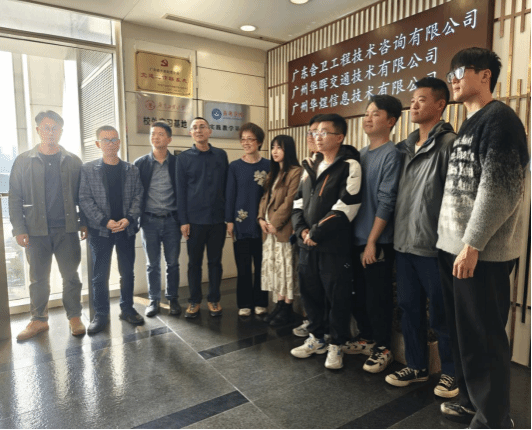 揭牌仪式后我院一行与广州华晖交通技术有限公司董事长黄少杰、总经理黄振英、技术总顾问张敬沛、总工程师方国涛、副总工程师邱皓和各部门经理及我院校友进行了深入探讨和交流。